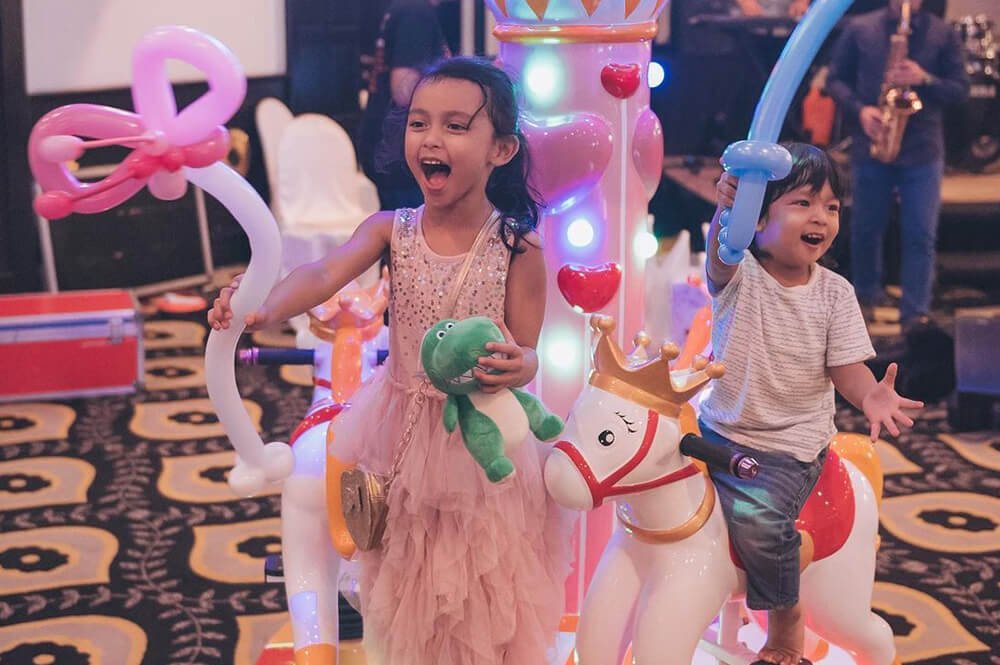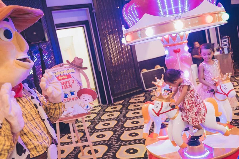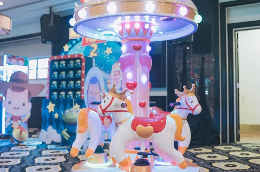 Who doesn't love a good carousel ride? With cute elements, lights and music, no child can resist riding on the ponies!